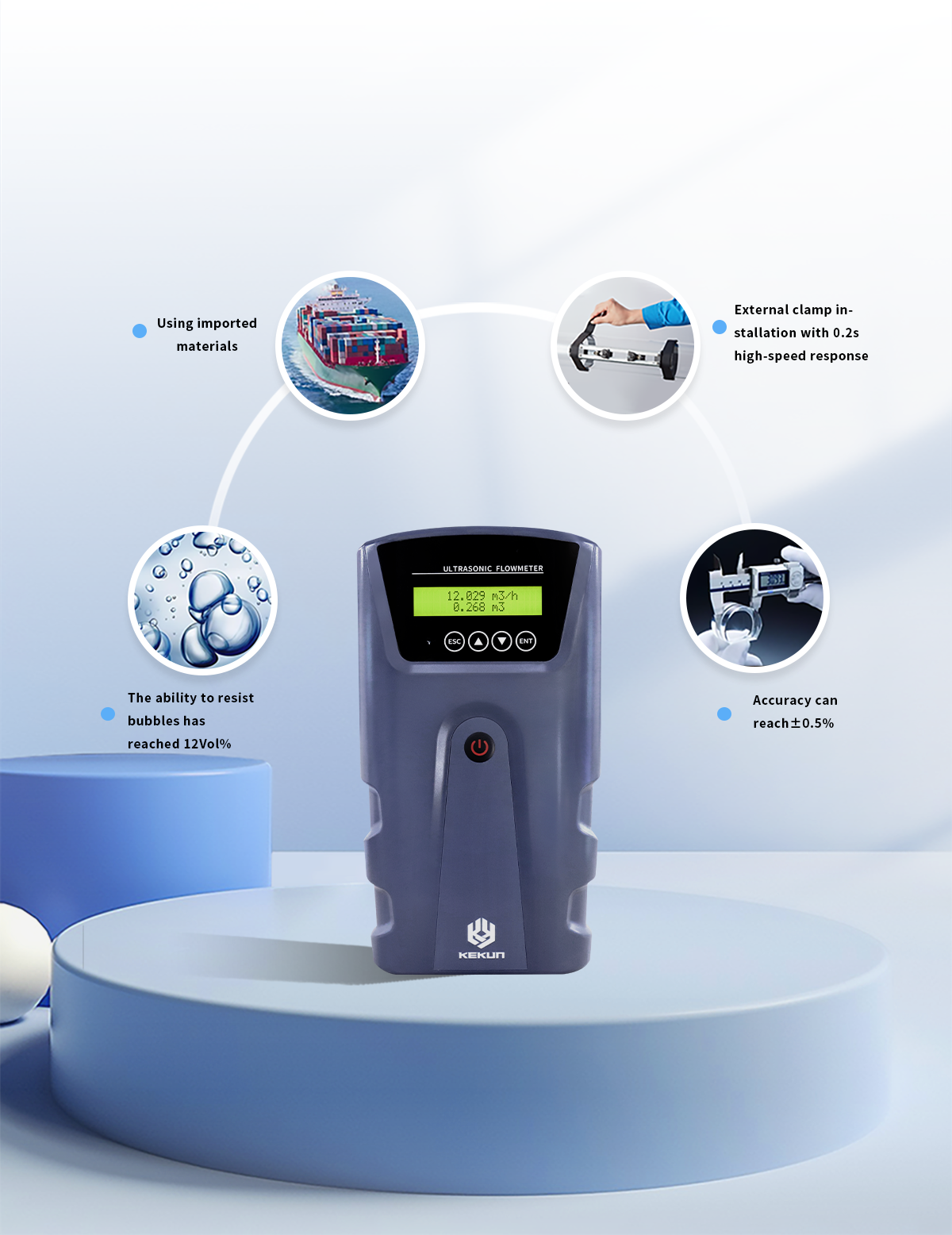 Ultrasonic flowmeter, energy meter simple operation, convenient installation, wide range of application, high measurement accuracy, affordable. Ultrasonic flowmeter and energy meter have good effect in HVAC engineering test and air conditioning circulating water measurement, and have been widely praised, and have become a convenient tool for HVAC engineering test, debugging, inspection and maintenance. -