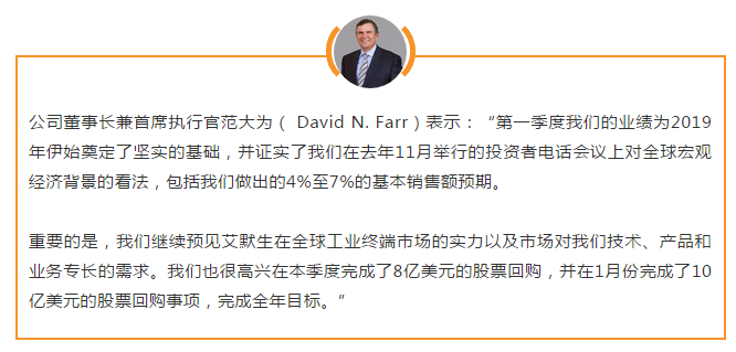 Mr Fan said: "Full-year orders, underlying sales, profitability and cash flow are all on track for a strong 2019 financial year. Within our earnings per share guidance, we included a 3 cent operating M&A charge in our operations, increasing our guidance range by 5 cents in light of the stronger-than-expected first quarter. We will continue to make a difference in 2019, with teams around the world ready to deliver higher value to customers and shareholders."